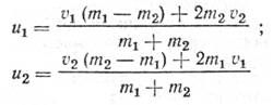 Скорости шаров массами m1 и m2 после абсолютно упругого центрального удара