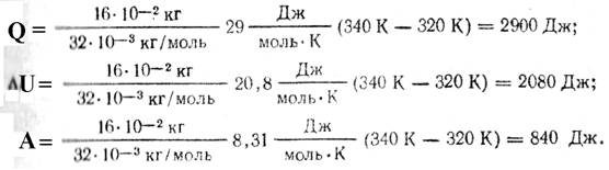 33(43). Какое количество теплоты нужно сообщить 1 кмолю кислорода, чтобы он совершил работу в 1000 Дж: а) при изотермическом процессе; б) при изобарном?