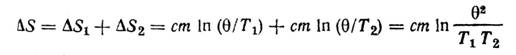 так как (Т1+Т2)2>4T1T2, то ∆S>0.