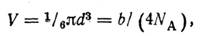 Постоянную b в уравнении Ван-дер-Ваальса с достаточной степенью точности считают равной учетверенному собственному объему 1 моля газа. В 1 моле газа находится 6,02*1023 молекул (NA = 6,02*1023 моль-1), следовательно, объем одной молекулы равен