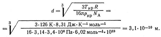 68.Определить эффективный диаметр молекулы газа, для которого критическая температура равна 282,7 К, поправка в уравнении Ван-дер-Ваальса a=45,3*10-2 Н*м4/моль2.