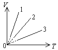 6. На графике приведены зависимости объема от температуры при изобарном нагревании одинаковой массы одного и того же газа при различных давлениях. Давления газа связаны соотношениями: