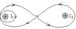16. Циркуляция вектора напряженности магнитного поля по замкнутому контуру, охватывающего токи I1= I2=1A равна