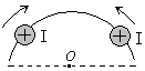 16. Два бесконечно длинных параллельных проводника с токами, текущими в одном направлении, сближаются, перемещаясь по дуге окружности с центром в точке О. При этом модуль вектора индукции магнитного поля этих токов в точке О: